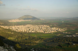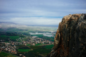 Proceed along the Kings highway leading to biblical Megiddo and the Jezreel valley one of the main farming areas of Israel known as the plain of Harmegedon.