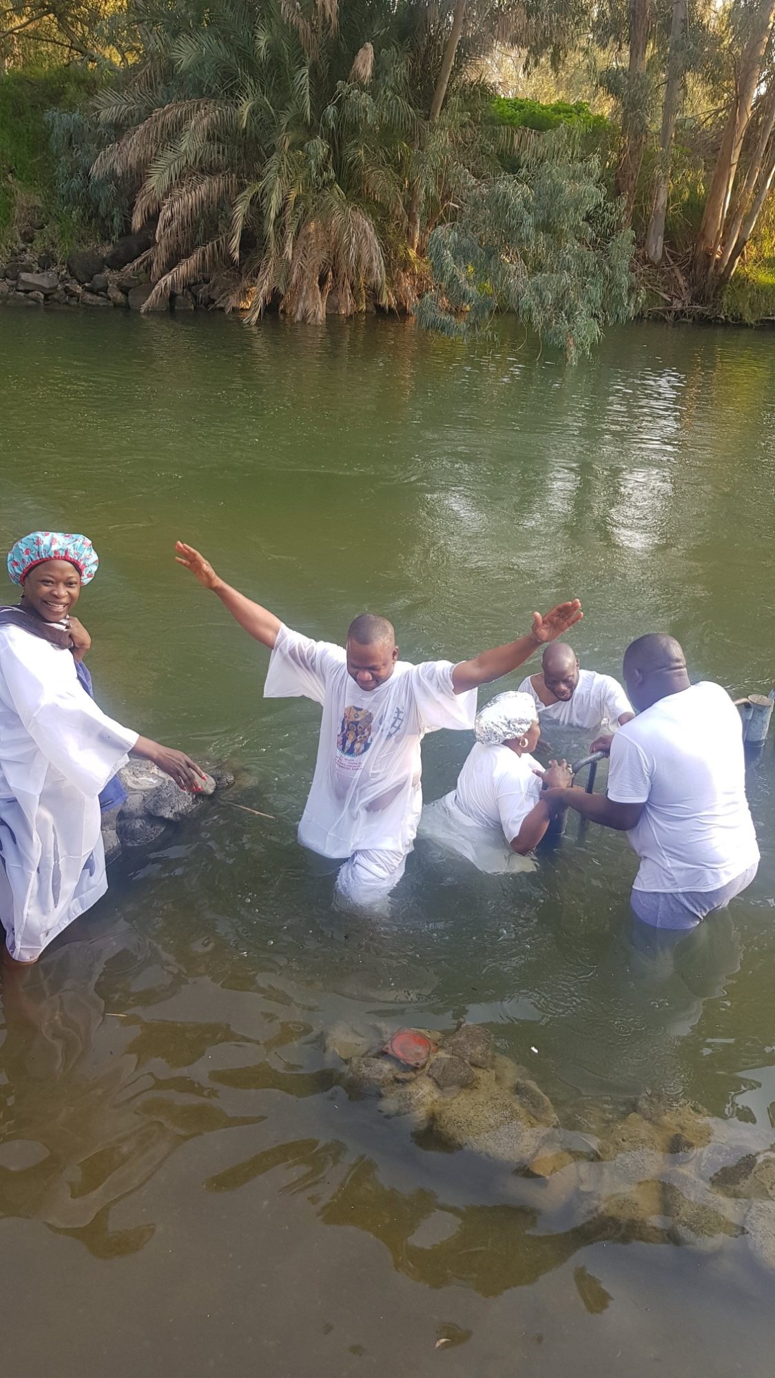 The Galilean Ministry of Christ - Group Tour Northern Israel From $100 More popular group tours by area Sunrise at Masada - Private Tour Dead Sea Area, Southern Israel From $810 The Coastal Route - Group Tour Northern Israel From $116 Masada and Dead Sea - Group Tour Jerusalem Area From $113 Biblical sites in the Jezreel Valley and the Lower Galilee - Private Tour Northern Israel From $860 The Negev Desert - Group Tour Southern Israel From $210 More popular private tours by area Israel Highlights Tour - 8 Days Group Tour All over Israel From $1305 Israel Heritage Tour - 8 Days Group Tour All over Israel From $1315 Israel Bibleland Tour - 8 Days Group Tour All over Israel From $1390 All package tours Israel Highlights and Petra in Jordan - 9 Days Group Tour All over Israel, Eilat and Jordan From $2040 Israel Highlights and Jordan - 11 Days Group Tour All over Israel, Eilat and Jordan From $1980 Israel Heritage and Jordan - 11 Days Group Tour All over Israel, Eilat and Jordan From $2018 About our tour packages Jerusalem by Helicopter – Private Helicopter Tour Israel Jerusalem Area From $620 Jerusalem, Judean Desert, Masada and Dead Sea - Private Helicopter Tour Israel Southern Israel, Jerusalem Area From $1190 Caesarea, Nazareth and Sea of Galilee - Private Helicopter Tour Israel Northern Israel From $1700 Galilee, Dead Sea and Jerusalem - Private Helicopter Tour Israel All over Israel, Northern Israel, Dead Sea Area, Jerusalem Area From $1280 Jerusalem Old and New - Private Tour Jerusalem Area From $680 Jerusalem and the Dead Sea - Private Tour Jerusalem Area From $790 Jerusalem and Bethlehem - Private Tour Jerusalem Area From $745 The Coastal Route - Private Tour Northern Israel From $755 Masada and Dead Sea - Private Tour Jerusalem Area The Galilean Ministry of Christ and The Golan Height- Private Tour Northern Israel The Negev Desert - Private Tour Southern Israel The Sea of Galilee and its Surroundings - Private Tour Northern Israel From $ From $ From $ From $ Tours by Area (current) Jerusalem Area Northern Israel Dead Sea Area Tel Aviv Area Eilat & Jordan Classic Jerusalem Old and New - Group Tour From $76 Jerusalem - Archaeological Tour - Group Tour From $95 Jerusalem and Bethlehem - Group Tour From $120 Jerusalem - In the footsteps of Jesus - Group Tour From $95 Jerusalem - The New City - Group Tour From $130 Jerusalem and the Dead Sea - Group Tour From $120 Jerusalem and Bethlehem - Group Tour From $120 Jerusalem by Helicopter – Private Helicopter Tour Israel From $620 View all tours by area Jerusalem and Bethlehem - Private Tour From $745 Jerusalem Old and New - Private Tour From $680 Jerusalem -Archaeological Tour - Private Tour From $680 Jerusalem and the Dead Sea - Private Tour From $790 The Coastal Route - Group Tour From $116 The Galilean Ministry of Christ - Group Tour From $100 The Golan Height - Group Tour From $128 Caesarea, Nazareth and Sea of Galilee - Private Helicopter Tour Israel From $1700 The Coastal Route - Private Tour From $755 The Sea of Galilee and its Surroundings - Private Tour From $920 Biblical sites in the Jezreel Valley and the Lower Galilee - Private Tour From $860 The Galilean Ministry of Christ and The Golan Height- Private Tour From $880 Nazareth, Sea of Galilee and the Golan Heights - 2 Days Group Tour From $328 Dead Sea Relaxation - Group Tour From $95 Jerusalem and the Dead Sea - Group Tour From $120 Masada and Dead Sea - Group Tour From $113 Kings and Rebels in the Wilderness of Judea - Private Tour From $710 Jerusalem and the Dead Sea - Private Tour From $790 Jerusalem, the Judean Desert, Masada and the Dead Sea - Private Helicopter Tour Israel From $1700 Sunrise at Masada - Private Tour From $810 Jerusalem and Masada - 2 Days - Group Tour From $321 Jerusalem, Bethlehem and Dead Sea Relaxation - 2 Days Group Tour From $321 Tel Aviv - Jaffa City - Group Tour From $101 Petra from Eilat - Group Tour From $260 Israel Highlights and Jordan - 11 Days Group Tour From $1980 Israel Highlights and Petra in Jordan - 9 Days Group Tour From $2040 VIP and Transportation Services VIP Service at Ben Gurion Airport Services upon arrival/departure Interurban Transportation Transportation to destinations in Israel Chauffeured Car Services Service of chauffeured tourist vehicles Virtual Tours Hot Deals When being close up and personal was not an issue April 5, 2020 Only 2 short weeks before the Corona Crisis hit us – putting on hold the lives, plans and ability to socialize, of everyone around the world – we had the pleasure of hosting a group of pilgrims in Israel. During our many years of work we have met many individuals and groups of visitors to Israel, each leaving a unique impression, wonderful pictures and memories. Some, however leave a special mark, such as the group lead by Mary Abiola, a mark we would like to share. When social distance was not an issue yet This group of pilgrims, organized by Mary Abiola, comprised of several pastors and members of various church communities, mainly from the UK, but also from the USA. The 27 group members came together for a pilgrimage to the Holy Land in mid-February. They visited Jerusalem, Bethlehem, Jericho and the Dead Sea, as well as Nazareth, the Sea of Galilee and the Jordan River. Mary Abiola being baptized Wherever they went they spread joy, love, gratitude and appreciation for God, Jesus and all the good in their lives. For many of the group this was a once in a lifetime opportunity and a time to thank and praise the lord for all the blessings bestowed on them during the past year. Many of the group members are very involved in their communities at home, providing voluntary and charity funded outreach programs for the needy. Their joy and appreciation at being able to provide these services to their communities is expressed in their testimonials of thanks and praise, in which each recounts the moments of good fortune bestowed upon them. Almost all of the members are of Nigerian origin, and were immig